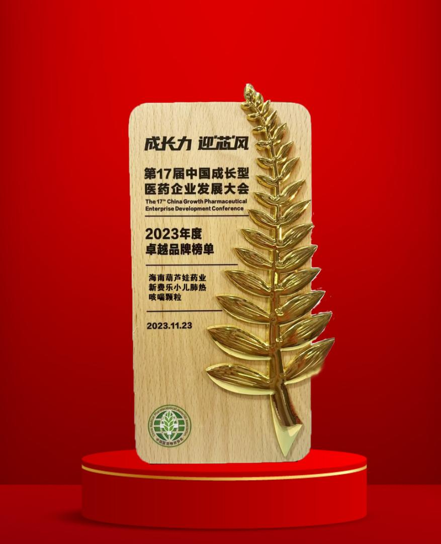 大会期间,一年一度的“金叶奖•2023年度医药行业风云人物奖”榜单重磅揭晓,银娱优越会药业集团党委书记、董事长刘景萍荣耀上榜。金叶奖是为了表彰广大医药企业家或企业为行业茁壮发展做出的卓越贡献而设立的奖项,“金”象征着品质、品牌、影响力,“叶”象征着生命、健康、成长力。金与叶结合,有“敬业、兢业、竞业”之意。此外,集团黄金单品新费乐®小儿肺热咳喘颗粒凭借卓越的产品质量和品牌影响力赢得了行业、市场和消费者的肯定,获得了“2023年度卓越品牌奖”。