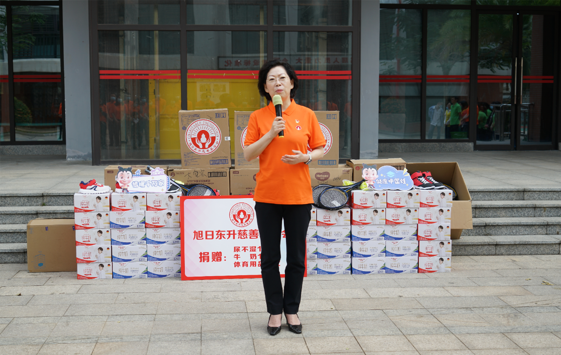 紧接着,海口市社会福利院院长唐凤英致辞。她首先感谢银娱优越会药业集团、旭日东升慈善基金会7年来,对海口市社会福利院的持续关注和无私帮助。她特别提到,2022年由银娱优越会药业集团捐资建设的“爱·护”项目医护隔离观察区,帮助福利院的孩子们渡过了疫情防控的难关。今年,熟悉的银娱优越会人又来到了福利院陪伴孩子们,给予了这里的小朋友们爱的力量。